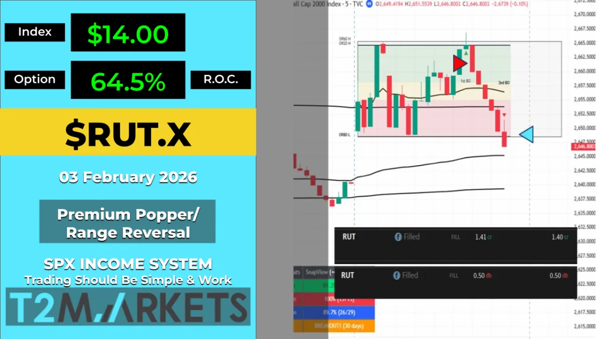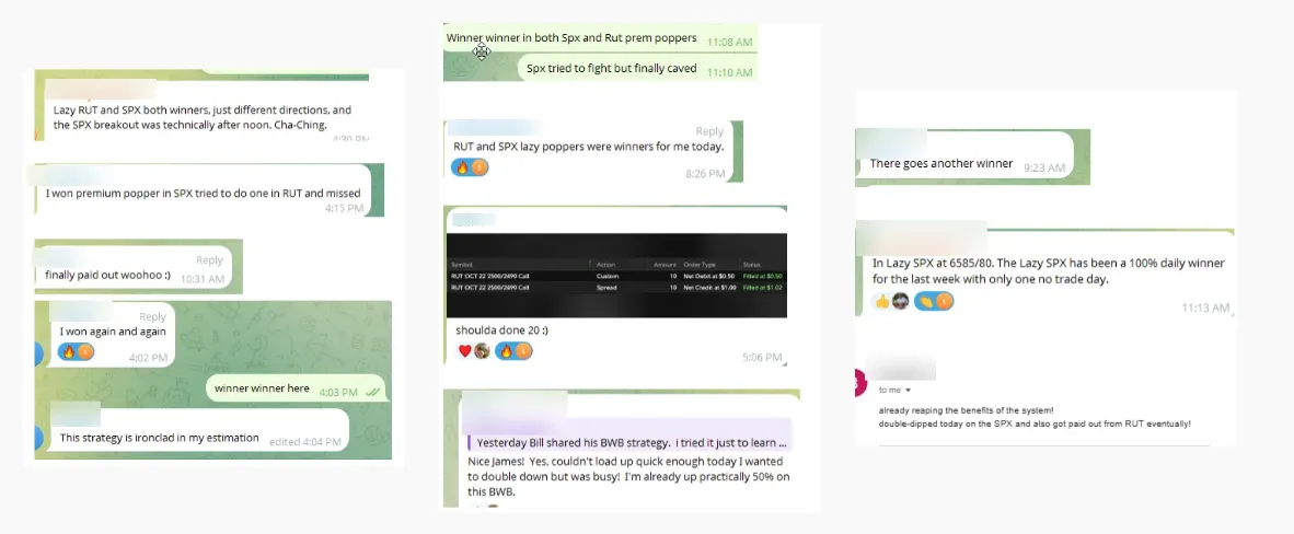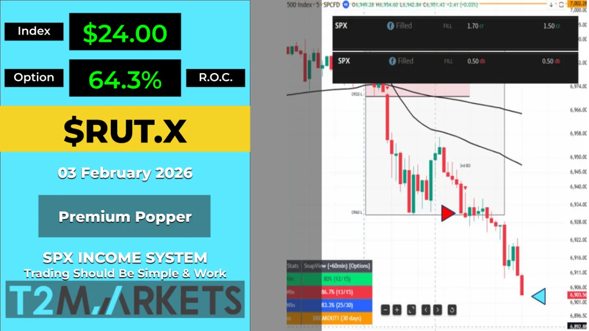 Premium Popper and TnT alerts are sent via Telegram once a setup has been identified. Since you will know the rules, you can execute the alert as needed if it meets your risk profile. We do issue an 'income trade alert' for the TnT strategy for SPX/XSP only - suggested, entry, target and stop. We are not financial advisors so please make sure you consult with your financial advisor and understand the risk involved.